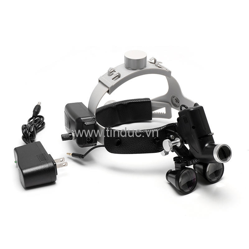 Kính lúp, đai choàng đầu, Đèn Led, Pin, sạc, Hộp đựng cứng.